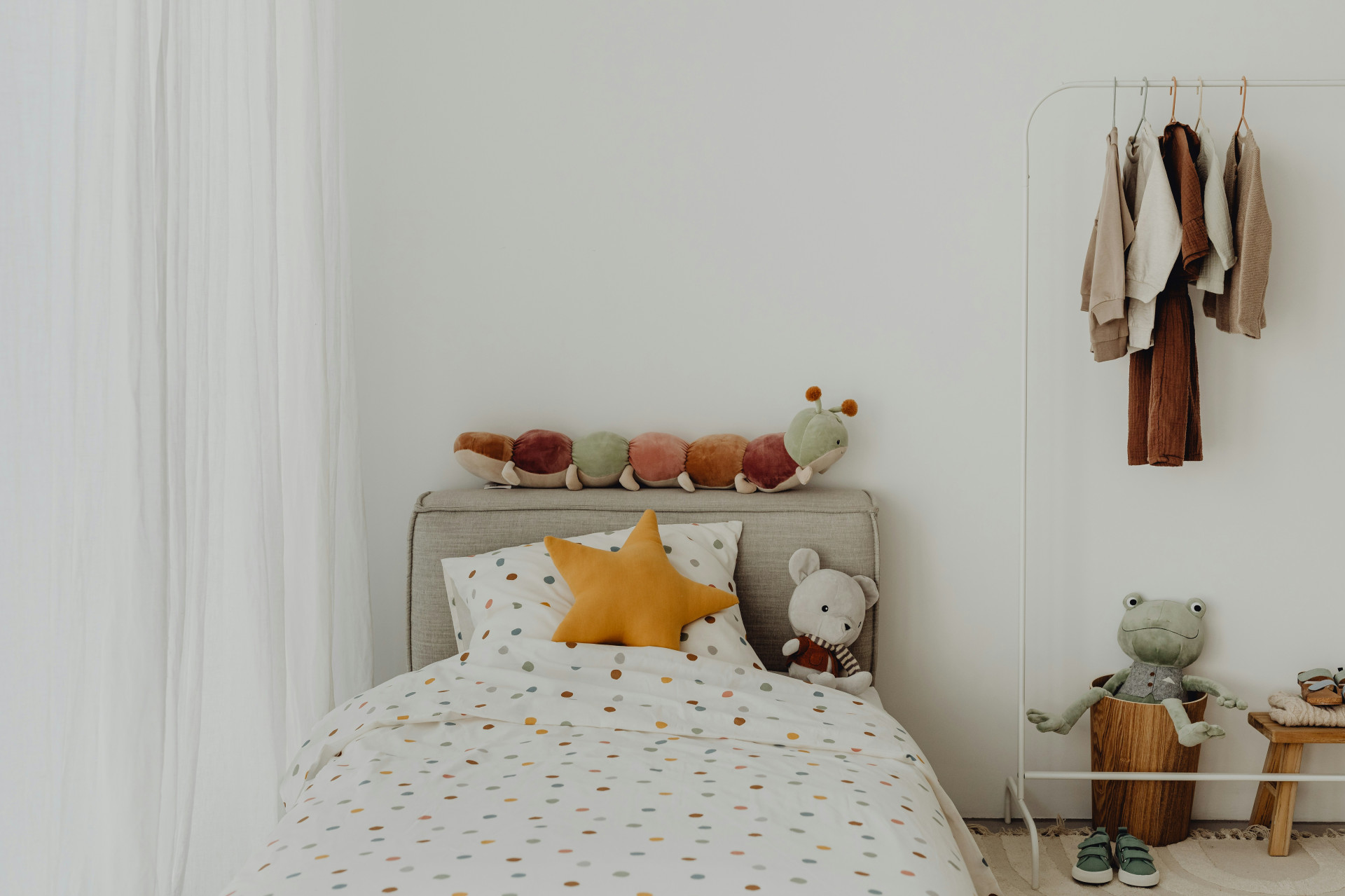 Et børneværelse skal kunne ændre sig hurtigt. Sørg for, at møblerne er lette at flytte, og at der er fri gulvplads til leg, gæster eller nye interesser.